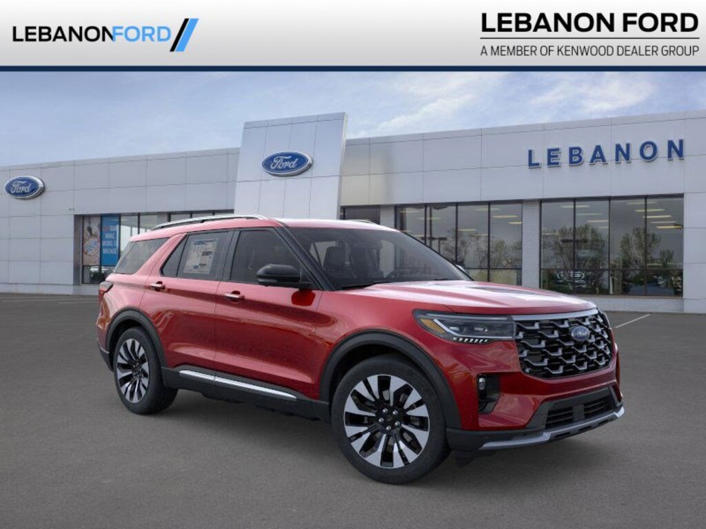$3,381 off MSRP! Lux Leather Package, Platinum Badges on Front Row Seats, Premium Leather Seating Surfaces Captain's Chairs. 20/27 City/Highway MPG Visit Lebanon Ford...We are an EIGHT time President's Award Winner...Not only do we sell the expected volume for Ford Motor Company but our customer experience after the sale exceeds Ford Motor Company's expectations!!! Rapid Red Metallic Tinted Clearcoat 2026 Ford Explorer 4D Sport Utility Platinum 4WD 2.3L EcoBoost I-4 Price includes: Although every reasonable effort has been made to ensure the accuracy of the information contained on this site, absolute accuracy cannot be guaranteed. All vehicles are subject to prior sale. Price does not include applicable tax, title, license, and a $387.00 documentation fee or other fees required by law, lending institutions, and/or lessors. Vehicles shown at different locations are not currently in our inventory (not in stock) but can be made available at our location within a reasonable time after your request. Listed APR, down payment, payments, incentives and other terms are estimates for example purposes only. The payment information provided here is not a commitment by any organization to provide credit, leases or other programs. Some customers may not qualify for listed programs.$1000 - Retail Customer Cash. Exp. 01/05/2026