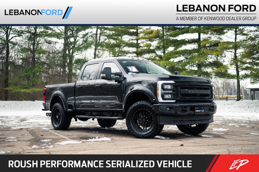 ROUSH F-250, SUPER DUTY, 4-Way Adjustable Headrests, 5th Wheel/Gooseneck Hitch Prep Package, 6 Ebony Black Angular Running Boards, Black Appearance Package, Black Painted Front Grille Surround, Body Color Front & Rear Bumpers, Ebony Black Painted Mirror Caps, F-250 >10K GVWR Package, Ford Connectivity Package (1-Year Included), Head-Up Display, High Capacity 11.6 Axle Upgrade Package, Internet access capable: 5G Modem - Ford Connectivity Package, Lane Departure Warning System, Lariat Premium Package, Lariat Ultimate Package, Order Code 608A, Power-Deployable Running Boards, Power-Sliding Rear-Window w/Defrost, Privacy Glass, Pro Trailer Backup Assist, Pro Trailer Hitch Assist, Radio: B&O Unleashed Sound System by Bang & Olufsen, Rear Wheel Well Liners (Pre-Installed), SiriusXM w/360L, SYNC 4 w/Enhanced Voice Recognition, Tailgate Step & Handle, Tough Bed Spray-In Bedliner, Twin Panel Power Moonroof, Wheels: 20 Ebony Black High Gloss. Visit Lebanon Ford...We are an EIGHT time President's Award Winner...Not only do we sell the expected volume for Ford Motor Company but our customer experience after the sale exceeds Ford Motor Company's expectations!!! Black Metallic 2026 Ford F-250SD 4D Crew Cab Lariat ROUSH 4WD 6.7L High Output Power Stroke V8 Diesel Price includes dealer added accessories. Although every reasonable effort has been made to ensure the accuracy of the information contained on this site, absolute accuracy cannot be guaranteed. All vehicles are subject to prior sale. Price does not include applicable tax, title, license, and a $387.00 documentation fee or other fees required by law, lending institutions, and/or lessors. Vehicles shown at different locations are not currently in our inventory (not in stock) but can be made available at our location within a reasonable time after your request. Listed APR, down payment, payments, incentives and other terms are estimates for example purposes only. The payment information provided here is not a commitment by any organization to provide credit, leases or other programs. Some customers may not qualify for listed programs.