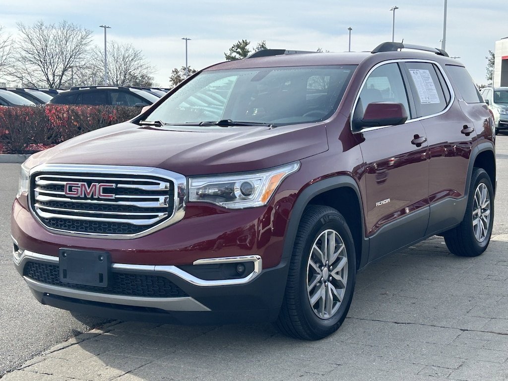 Crimson Red Tintcoat 2017 GMC Acadia SLE-2 FWD 6-Speed Automatic 3.6L V6 SIDI DOHC VVT Clean Carfax, 7 Passenger Third Row Seating, Local Trade, Hard to Find, Serviced Here, FWD, Jet Black Cloth, Delay-off headlights, Driver Alert Package I, Front fog lights, Fully automatic headlights, Heavy Duty Cooling System, Preferred Equipment Group 3SB, Rear Cross-Traffic Alert, Rear Park Assist, Side Blind Zone Alert w/Lane Change Alert, Trailering Package.